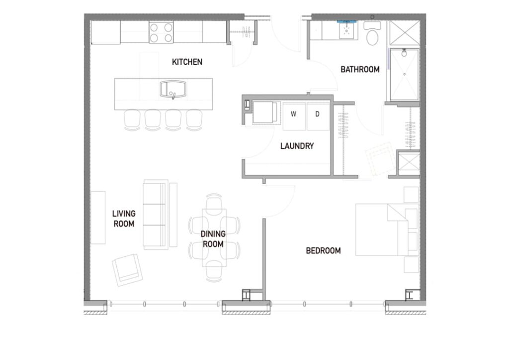 Located on floors 2 and 3 of the 303 Litho Building, residents can choose from floor plans ranging from 919 to 1,095 square feet. Each residence is expertly crafted with the finest hardwoods, natural stone, and wall covers which complement modern conveniences from luxury brands including Monogram, GE, Blanco, Delta, and Toto.